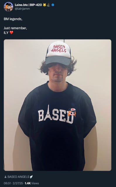 I will continue angel investing into these Based Angels (pun intended) like a VC before institutions enter the space. While boomers were buying Bitcoin ETFs in their retirement and brokerage accounts early last year, I was already dabbling in Ordinals, staying further out on the risk curve.