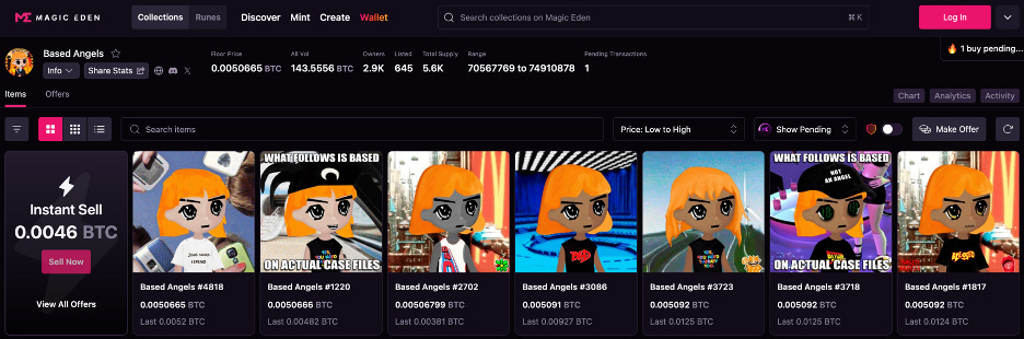 Overall, I have a strong feeling and hunch about Based Angels, which is rare for me. That feeling comes from my intuition and gut instinct, both of which I focus on before investing or trading. At this time, I do not find any other projects on Ordinals or Runes investable, and I think that will remain the case for a good period of time.